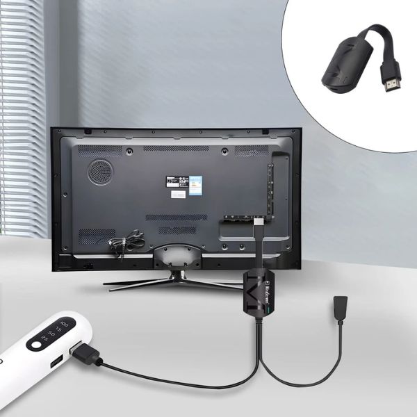 Plug & Play – دانگل را به HDMI وصل کنید، با USB تغذیه کنید و از طریق اپ یا تنظیمات دستگاه متصل شوید. 🖱️ سازگار با Android 4.2+، iOS 9+، Windows 8.1+ و macOS 10+، بدون نیاز به اپ اضafi. بدنه ABS مقاوم با وزن ۳۰ گرم، قابل حمل و همیشه همراه!