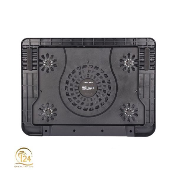 - خنککنندگی قدرتمند با ۵ فن 🌬️: یک فن بزرگ ۱۴۵×۱۴۵ میلیمتری و چهار فن کوچک ۵۵×۵۵ میلیمتری با سرعت ۱۰۰۰ RPM، جریان هوای قوی برای لپتاپهای تا ۱۸ اینچ فراهم میکند.