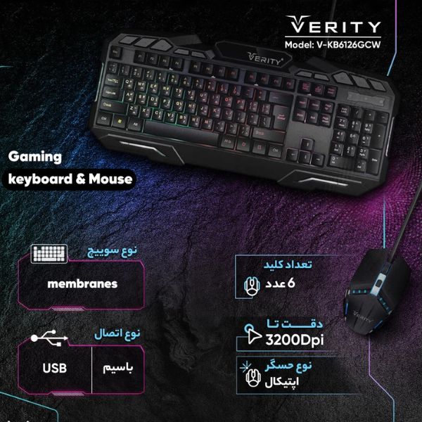 نقد و بررسی : کیبورد و ماوس گیمینگ verity مدل V-KB6126GCW